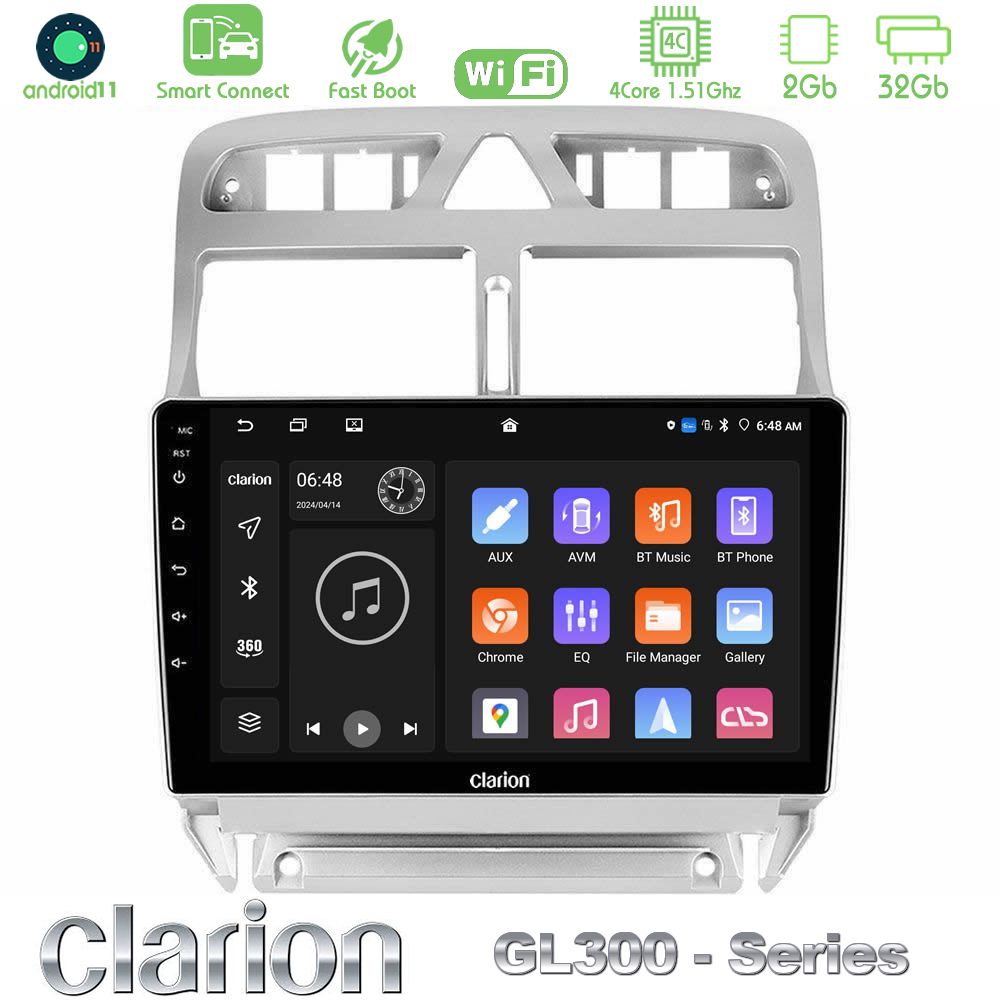 Tablet Clarion με πλαίσιο για Peugeot 206 με Android11 λειτουργικό σύστημα