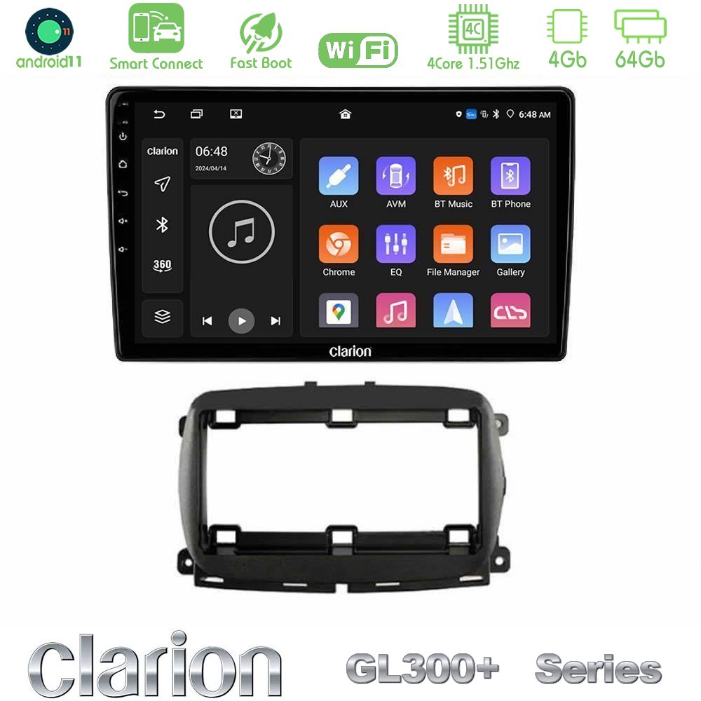 Tablet Clarion με πλαίσιο για Fiat Tipo 2015-2022 (Hatchback) με Android11 λειτουργικό σύστημα