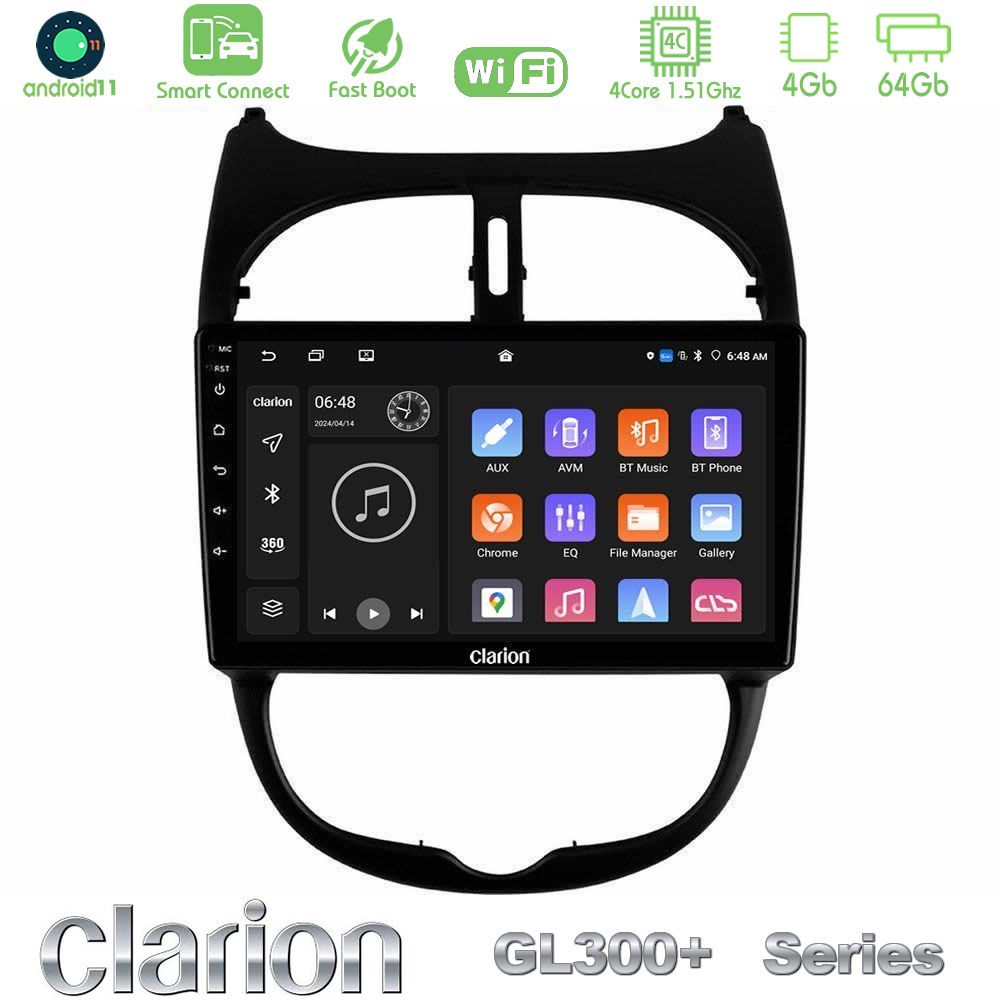 Tablet Clarion με πλαίσιο για Peugeot 206 με Android11 λειτουργικό σύστημα