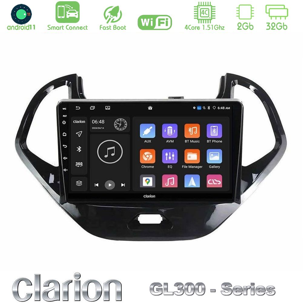 Tablet Clarion με πλαίσιο για Ford Ka 2016-2020 με Android11 λειτουργικό σύστημα