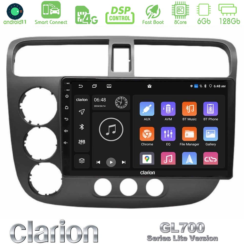 Tablet Clarion με πλαίσιο για Honda Civic με Android11 λειτουργικό σύστημα