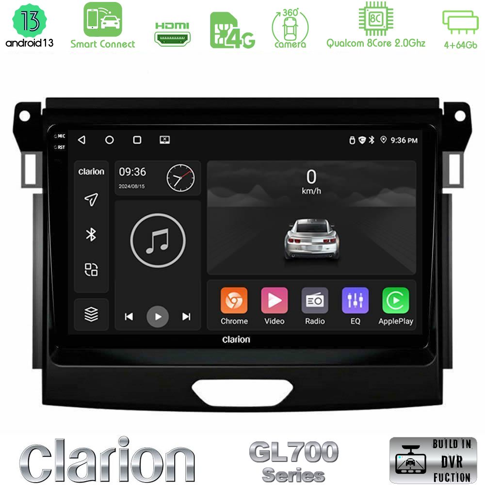 Tablet Clarion με πλαίσιο για Ford Ranger 2017-2022 με Android13 λειτουργικό σύστημα