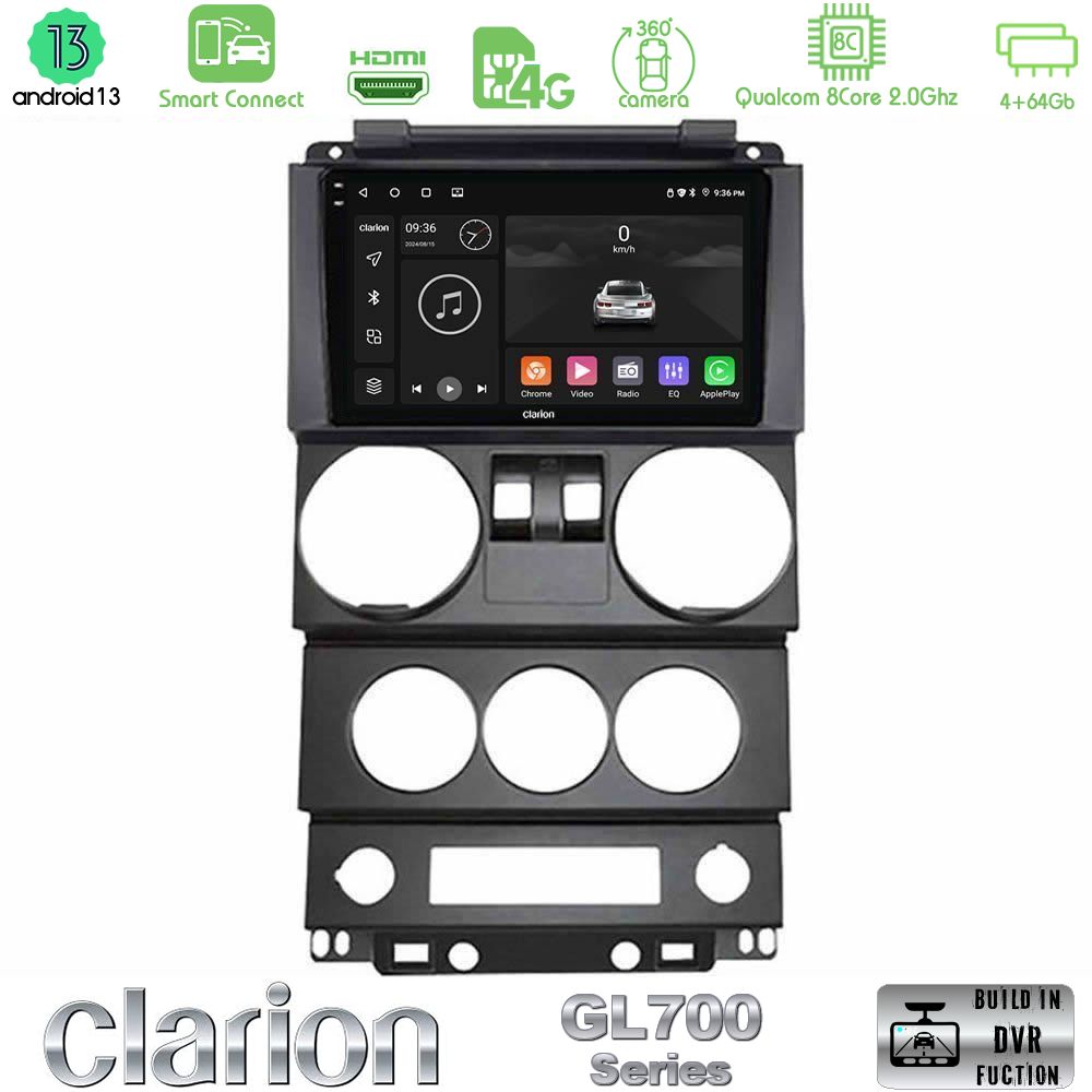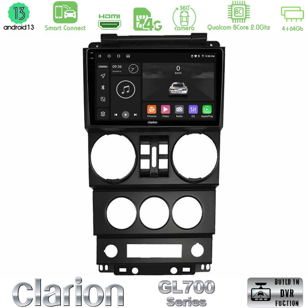 Tablet Clarion με πλαίσιο για Jeep Wrangler 2008-2010 με Android13 λειτουργικό σύστημα