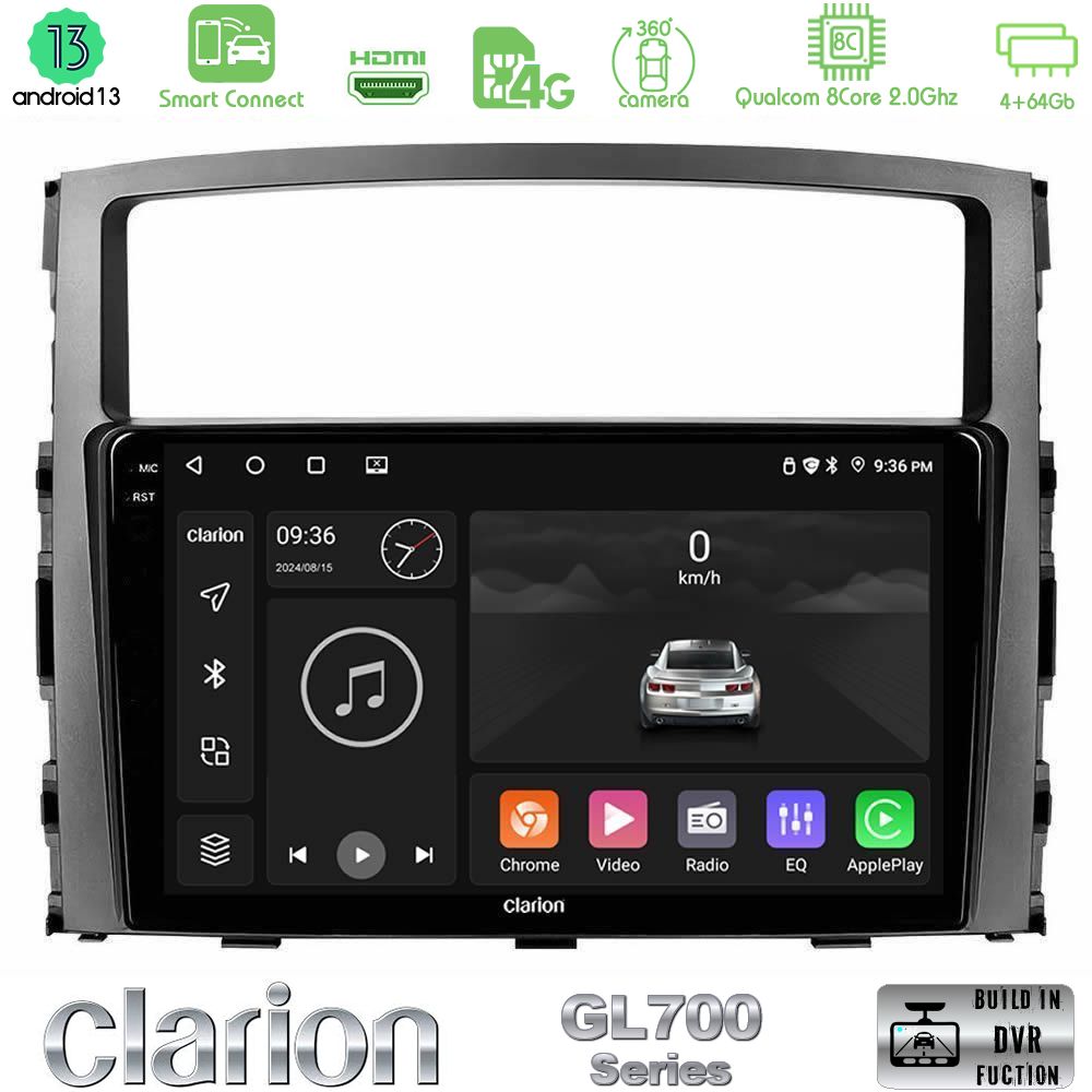 Tablet Clarion με πλαίσιο για Mitsubishi Pajero 2008-2009 με Android13 λειτουργικό σύστημα