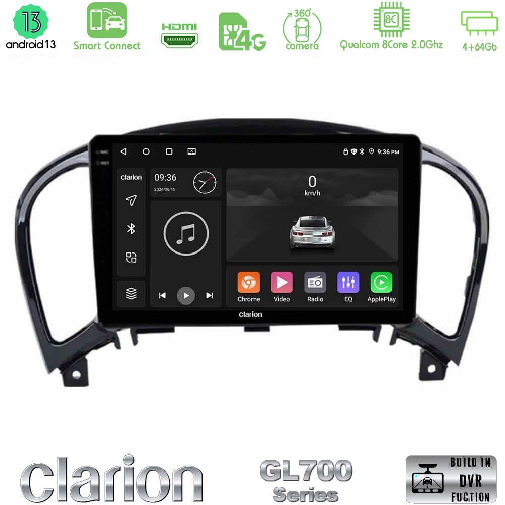 Tablet Clarion με πλαίσιο για Nissan Juke με Android13 λειτουργικό σύστημα