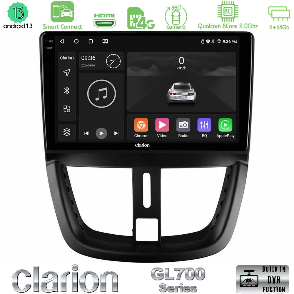 Tablet Clarion με πλαίσιο για Peugeot 307 2002-2008 με Android13 λειτουργικό σύστημα